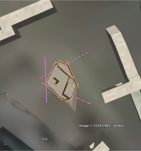 Before the Bering Sea to Norway Sea pole shift, Machu Picchu would have been rotated approximately 34° counterclockwise (i.e., west of north) relative to its current orientation and shifted about 6° further south in latitude. Figure 7 is a 3D model of the Intrihuatana with alignments relative to the Bering Sea pole. Being even further south than it is now, the surface would have to have been tilted even further toward the east for the Sun to disappear on the equinox. Although some sides and edges of the Intihuatana stone appear to be somewhat aligned to the pole and the winter solstice sunrise directions, its shape seems inconsistent with that of a device designed to mark either solstices or the equinox at this time.