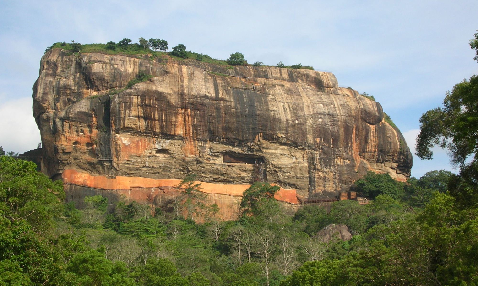 Sigiriya is an ancient rock fortress located in the middle of Sri Lanka. It is an imposing landform standing approximately 660 feet above the surrounding countryside. King Kassapa chose the site for his new capital and palace in the 6th century CE. The palace was at the top of the fortress, which today contains numerous terraces and pools. The entrance is through a gateway in the form of an enormous lion, of which only the claws remain.