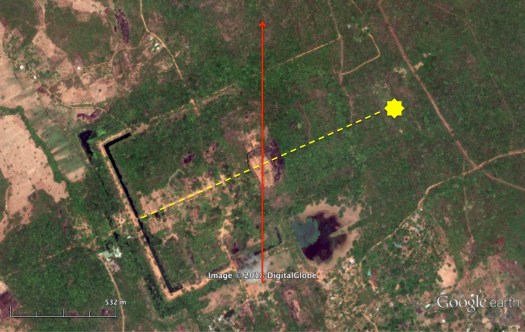 Could the Lion Rock of Sigiriya be another site that is aligned in some way with the Bering Sea pole? It can be shown that if Sigiriya were built when the pole was in the Bering Sea it would have been located almost exactly on the equator and rotated in the direction of the summer solstice sunrise (Figure 5). Not itself aligned to the cardinal directions, perhaps this was the best the builders could do to modify a pre-existing landform in order to somehow reference the sky at that time. If this was, in fact, the case then based on this alignment and Hapgood’s dating of an ancient pole near Alaska, Sigiriya could be 100,000 years old or more.