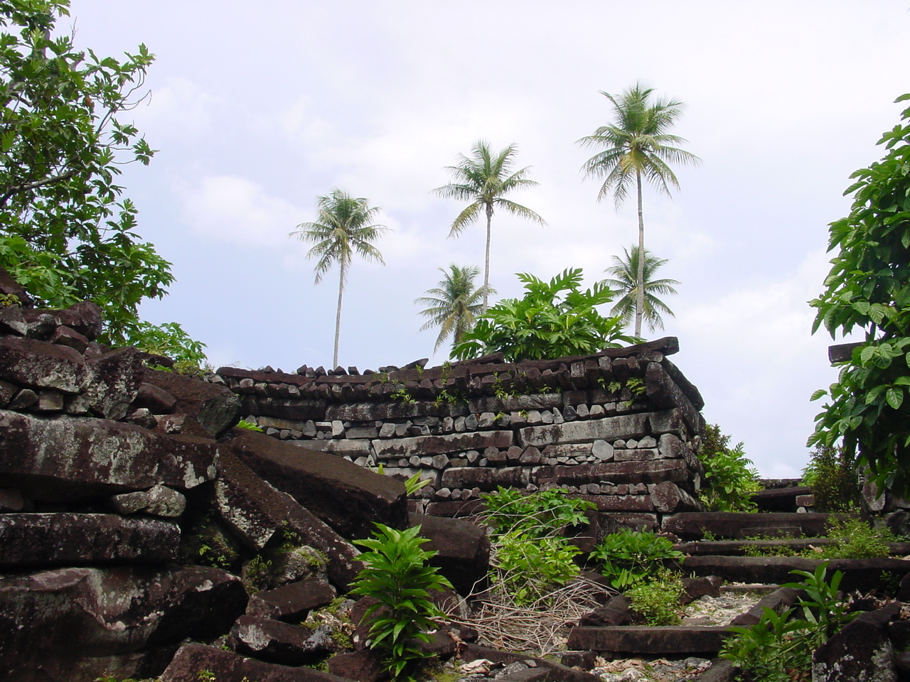 Nan Madol is a megalithic complex on the island of Pohnpei consisting of about a hundred rectangular islets. Most of the islets are surrounded by retaining walls constructed of long slabs of prismatic basalt laid on top of foundations of immense basalt boulders. Archaeologists believe that the earliest structures were built around 900 CE. It is thought that the enormous basaltic slabs were floated by some means from quarries on the other side of the island to their present location.