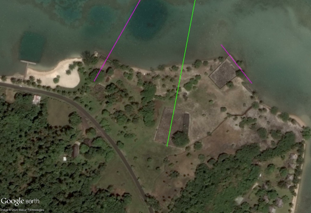 An analysis of the alignments of Nan Madol and other sites discussed in this article is sometimes difficult since many structures are not perfectly rectangular and not always oriented in exactly the same direction. The azimuth angle of the west-southwest retaining wall of Madol Pah measured in the same LIDAR image mentioned above is approximately 137°, which is not at a right angle to the southeast wall. Together these two walls thus defined a general range of directions to the southeast between 137° and 146°.