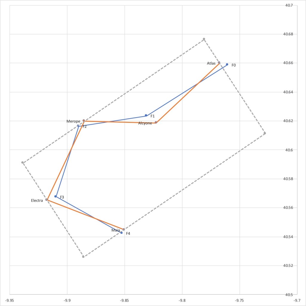 The matching process computes a transformation from stellar coordinates to ground coordinates. If the City corresponds to the Pleiades, by reversing the transformation, we can determine the location in the celestial sphere corresponding to the Face. Currently, there are no stars at this location, which led Herschel to hypothesize that it could have once pointed to a star that has since moved over the course of many thousands of years. But there is another possibility.