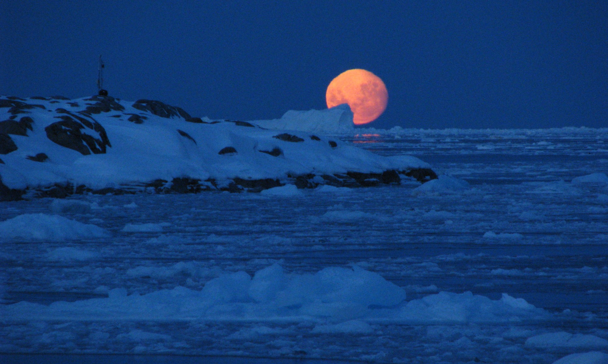 Featured image at the top of the article: “The moon sets behind Bonaparte Point, Anvers Island, across from Palmer Station, the U.S. Antarctic Program’s smallest research station.” September 2, 2009. Courtesy Ken Keenan/Creative Commons CC BY-NC-ND 4.0.